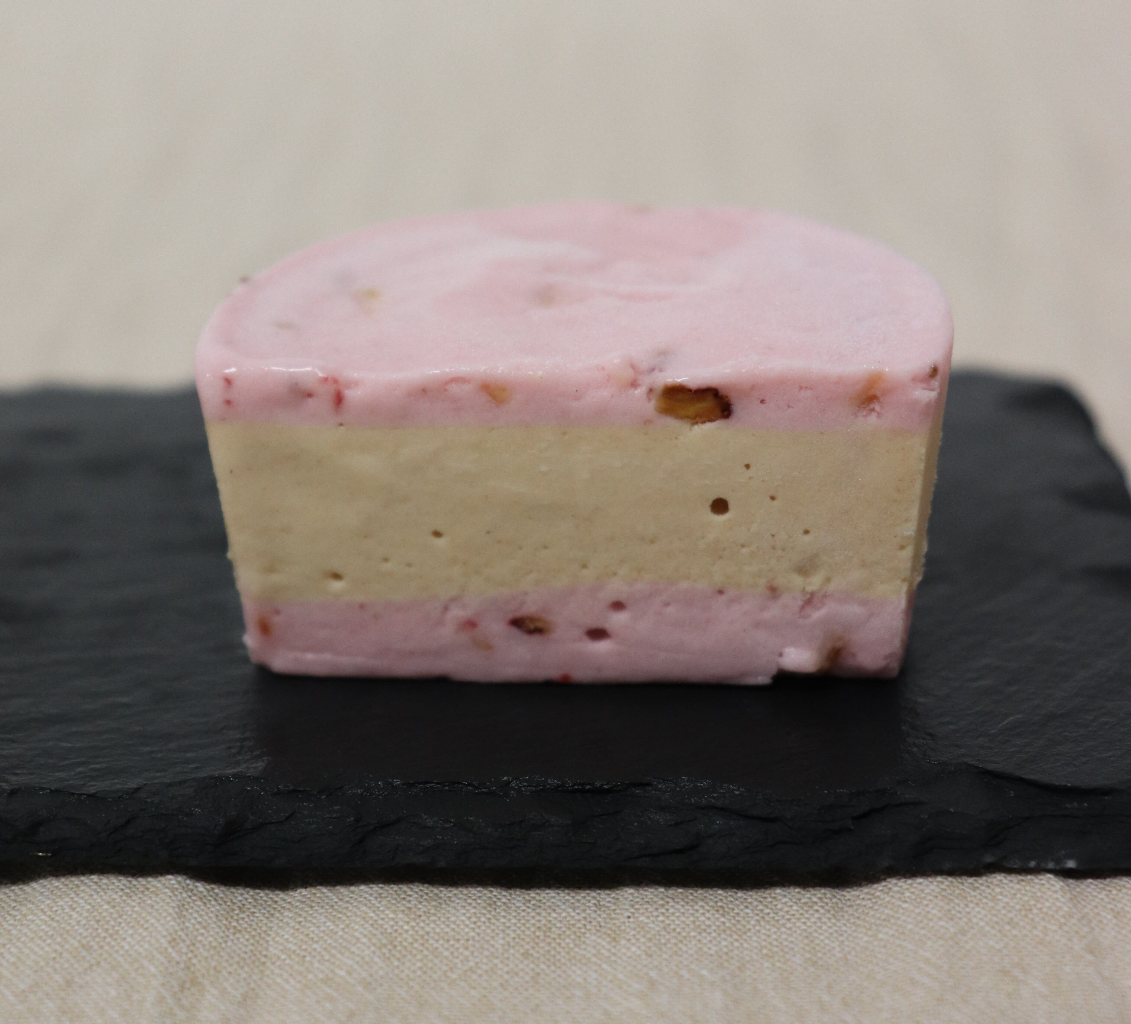 自社農園のいちごと地元の産地限定牛乳を使ったケーキのような3層仕立てのアイスです。